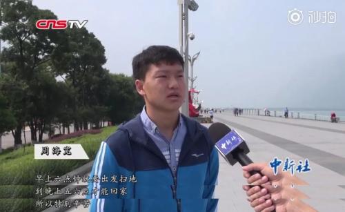 在采访中,他多次表示“父母太辛苦了”,母亲需要在早上六点出发扫地,到晚上五六点才能回家。