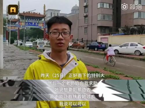 (截图:梨视频)他在接受采访时表示,(6月25日)那天雨下的特别大,一个老太太向他求助,他爽快答应。